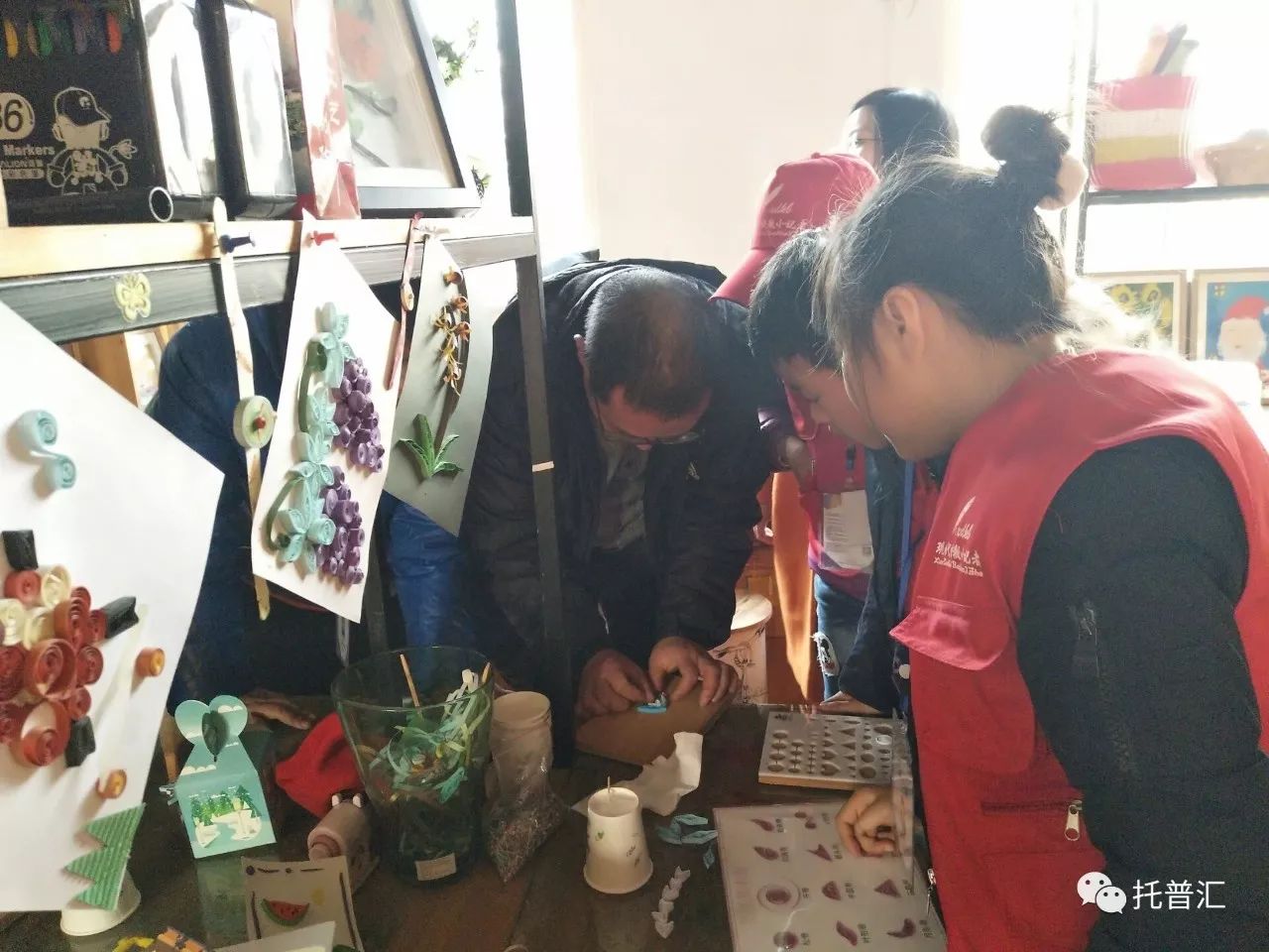 小记者们分成了两组,一组体验衍纸制作,一组体验木玩制作,两组都完成后再进行项目交换。