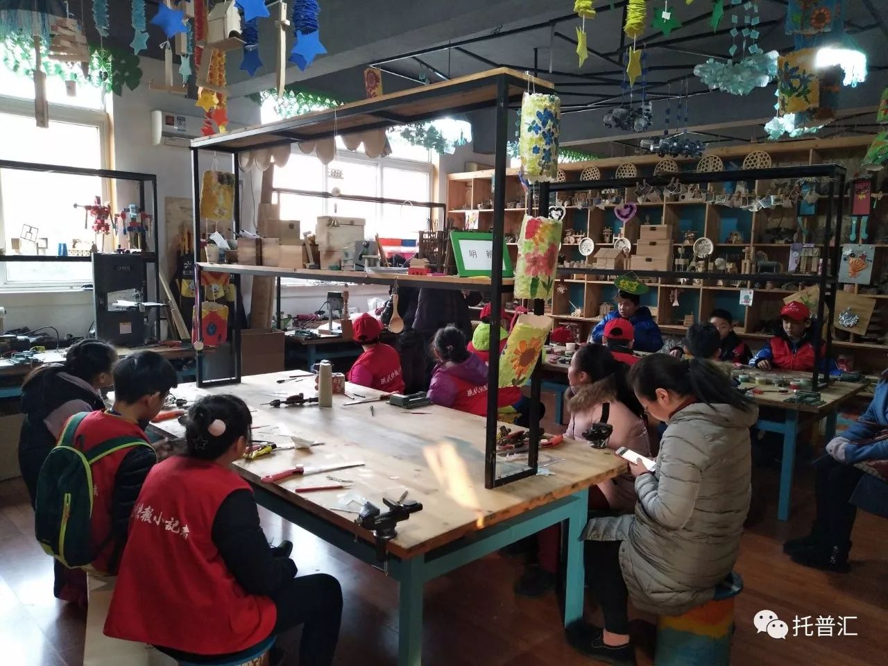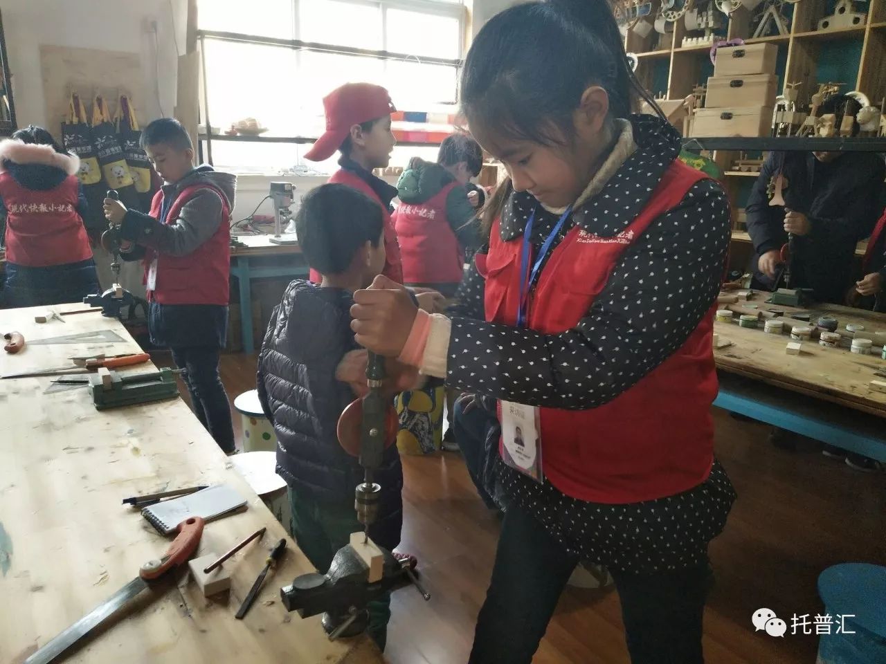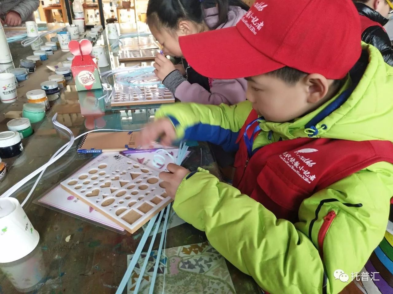 12月24日下午,在现代快报小记者工作室的组织下,湖塘桥第二实验小学的部分快报小记者们来到了灿计画美学馆,小记者们学习和体验了创意设计衍纸和木玩。