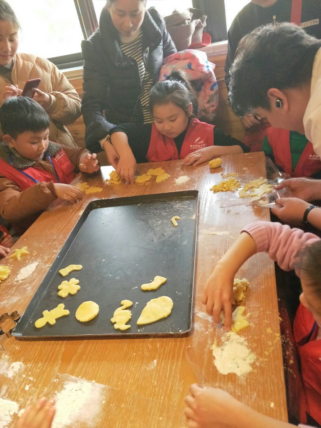 烘焙老师在指导小记者们制作饼干。