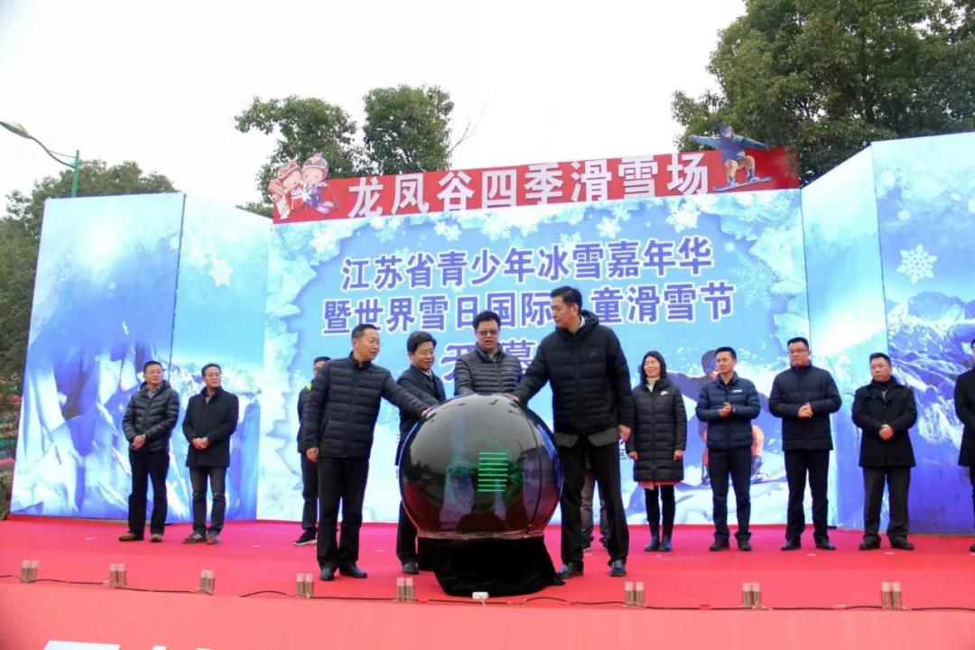1月20日,江苏省青少年冰雪嘉年华暨世界雪日国际儿童滑雪节开幕式在常州市武进区龙凤谷四季滑雪场举行。江苏省体育局局长陈刚、副局长王伟忠,常州市人民政府副市长方国强,江苏省教育厅体卫艺处处长张鲤鲤,常州市体育局局长朱笑冰,武进区人民政府副区长张小虎等领导出席开幕式。