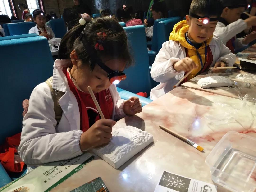 做好准备工作,小记者们开始“挖掘”恐龙化石啦!