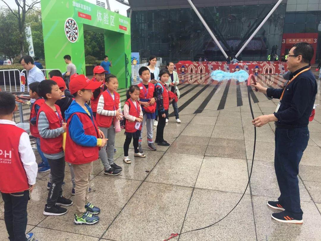 随后,参加采访活动的小记者们又来到鞭陀运动的活动场地,对鞭陀协会的领导及参赛运动员进行了采访,并在鞭陀教练的指导下,上场亲身体验了一把鞭陀运动。