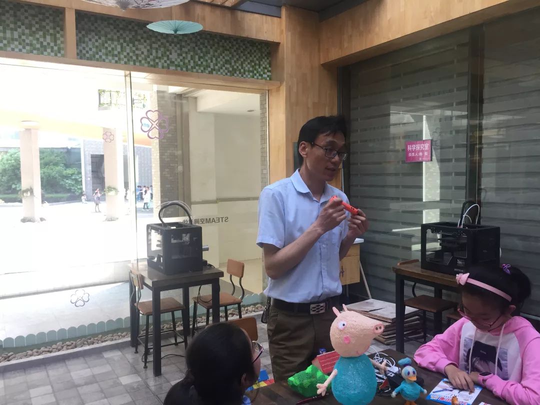 老师给小记者讲述3D打印知识,讲述如何使用神笔