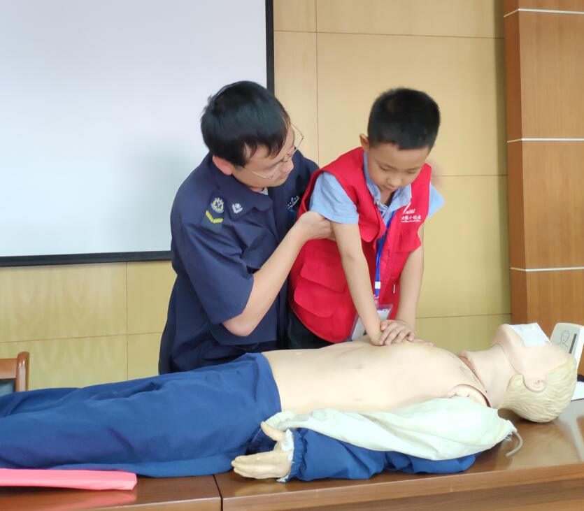 医生为大家仔细讲解了心肺复苏术(CPR)的正确步骤及方法,小记者们积极踊跃地参与操作练习,仔细学习每一个步骤!