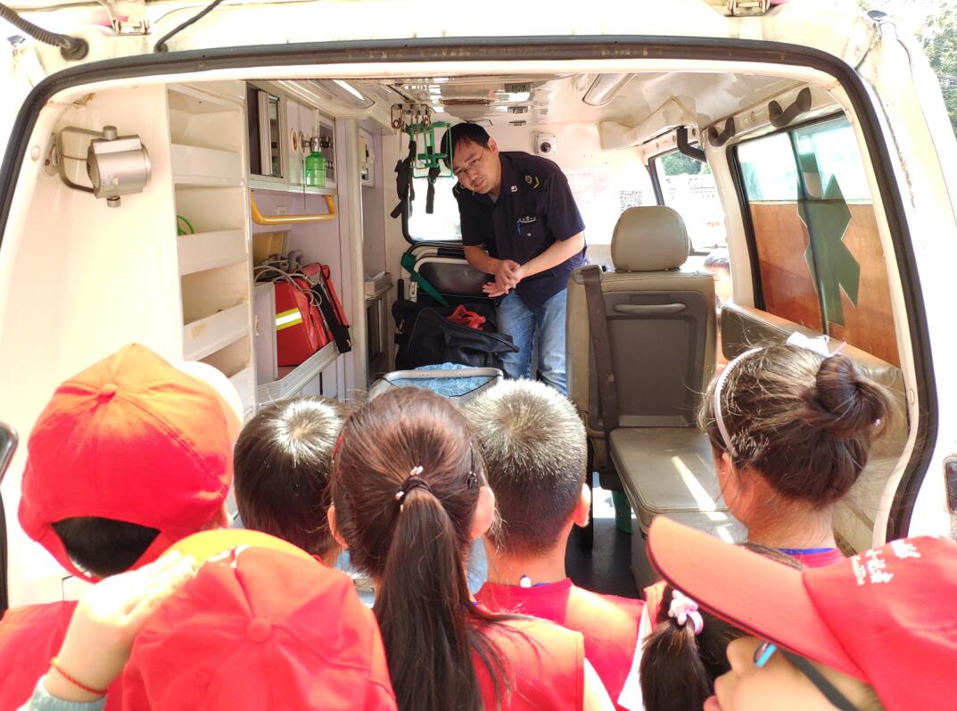 小记者们参观120医疗急救中心救护车,了解救护车的是如何执行任务的。