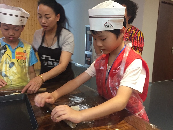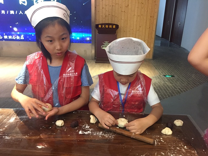 8月24日上午,来自清潭实验小学和西新桥实验小学的部分快报小记者来到双桂坊美食城,开展苏式月饼的制作与分享活动。双桂坊的李老师从中秋节的习俗讲起,带小记者了解中秋历史、相关传说以及与中秋节相关的经典诗词;接着点心师傅黄师傅手把手教小记者制作苏式月饼;最后大家还跟黄师傅一起互动交流。