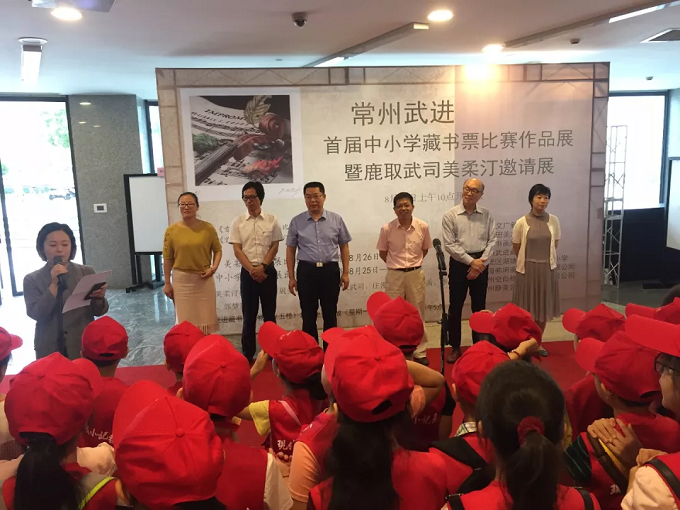 8月26日上午,来自武进区采菱小学和林南的部分快报小记者,参加由武进文广新局、恽南田美术馆、武进书画院主办的“常州武进首届中小学藏书票作品展暨鹿取武司美柔汀邀请展”开幕仪式。