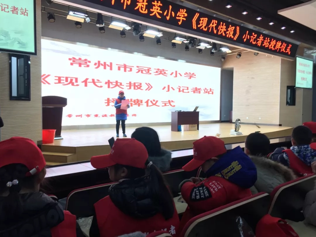 1月4日,常州觅渡教育集团冠英校区《现代快报》小记者站授牌仪式暨海洋生物科普知识讲座在学校报告厅隆重举行。