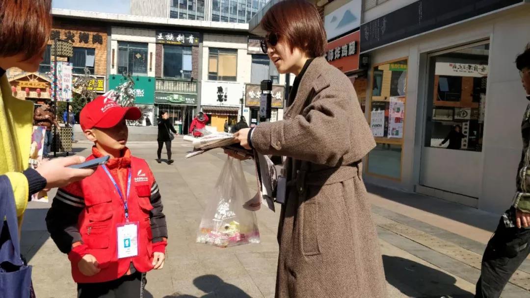 3月23日上午九点左右,新北万达广场人流如织,其中,身穿红马甲、头戴小红帽的小记者们格外引人注目。他们人人都捧着一沓报纸,在干什么呢?