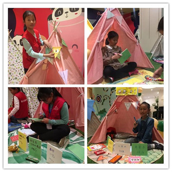 4月20日、21日,现代快报小记者工作室组织小记者们,前往常州购物中心六楼,参加“纸飞机公益季·亲子帐篷集市”义卖活动。