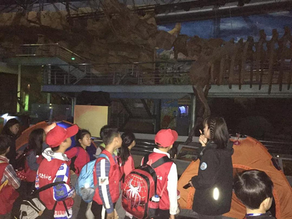 4月20日,快报小记者工作室联合中华恐龙园组织市实小教育集团平冈校区、西新桥小学、怀德教育集团香江华廷校区等快报小记者夜宿中华恐龙园的中华恐龙馆,开启夜晚有趣又神秘的寻宝之旅。