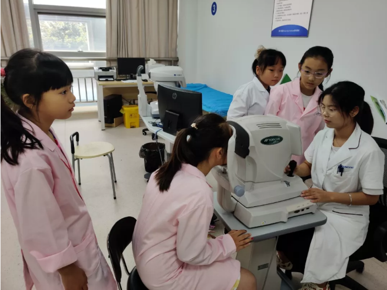7月7日上午,现代快报小记者工作室联合常州泽明眼科医院,开展“共同呵护好孩子的眼晴,让他们拥有一个光明的未来”主题公益夏令营活动,来自怀德教育集团香江华廷校区的部分小记者穿上了白大褂,体验成为一名“小小医生”的感觉,大家一起学习“七步洗手法”,了解近视眼的相关知识,收获科学的爱眼护眼方法。