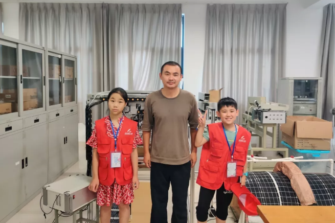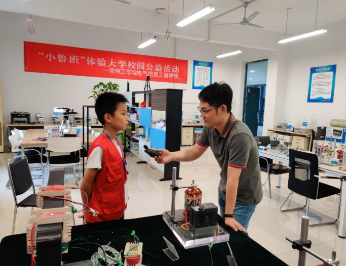 7月13日,来自星韵学校、河海实验小学、湖塘桥第二实验小学、常大附小等十个学校共30多名快报小记者,参观体验嵇明军技能大师工作室内的各种有趣的电与磁的教学仪器,常工院无人机实验室各种用途的无人机,柔性光伏温室大棚热斑检测及清洗装置,光伏发电路面模型等。