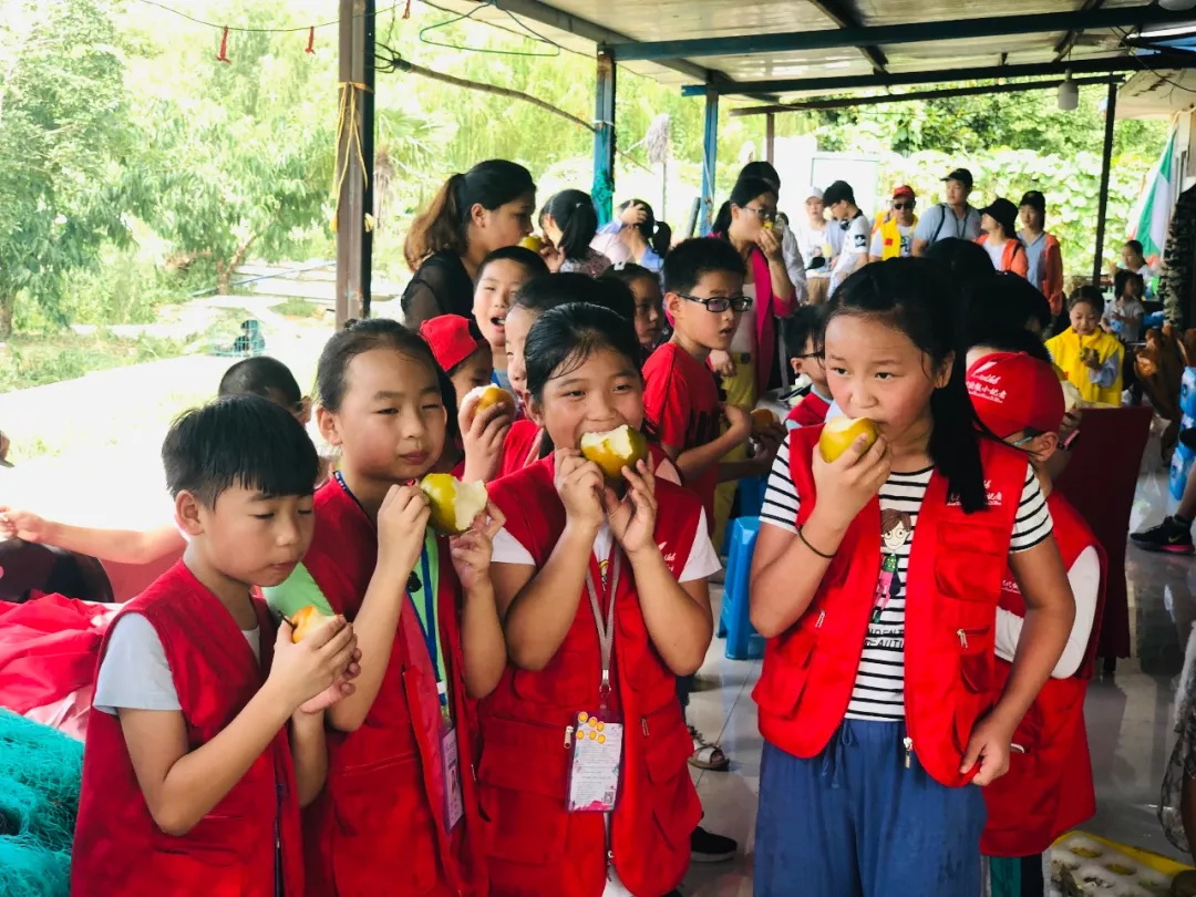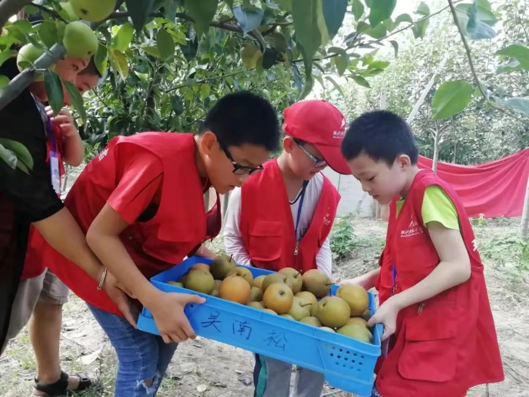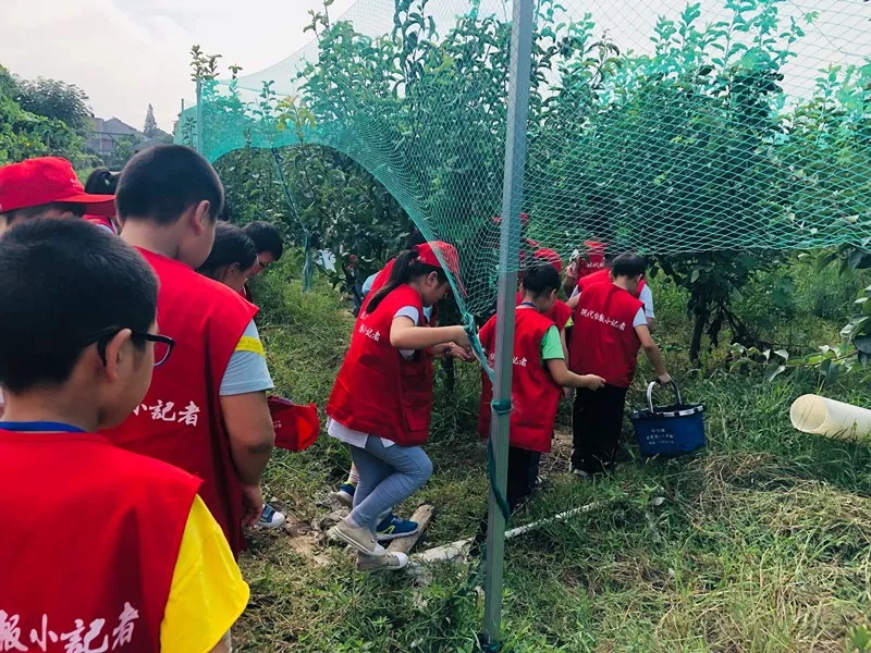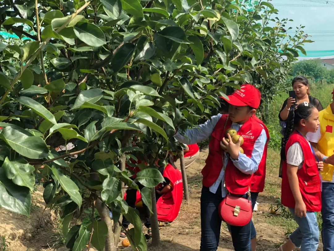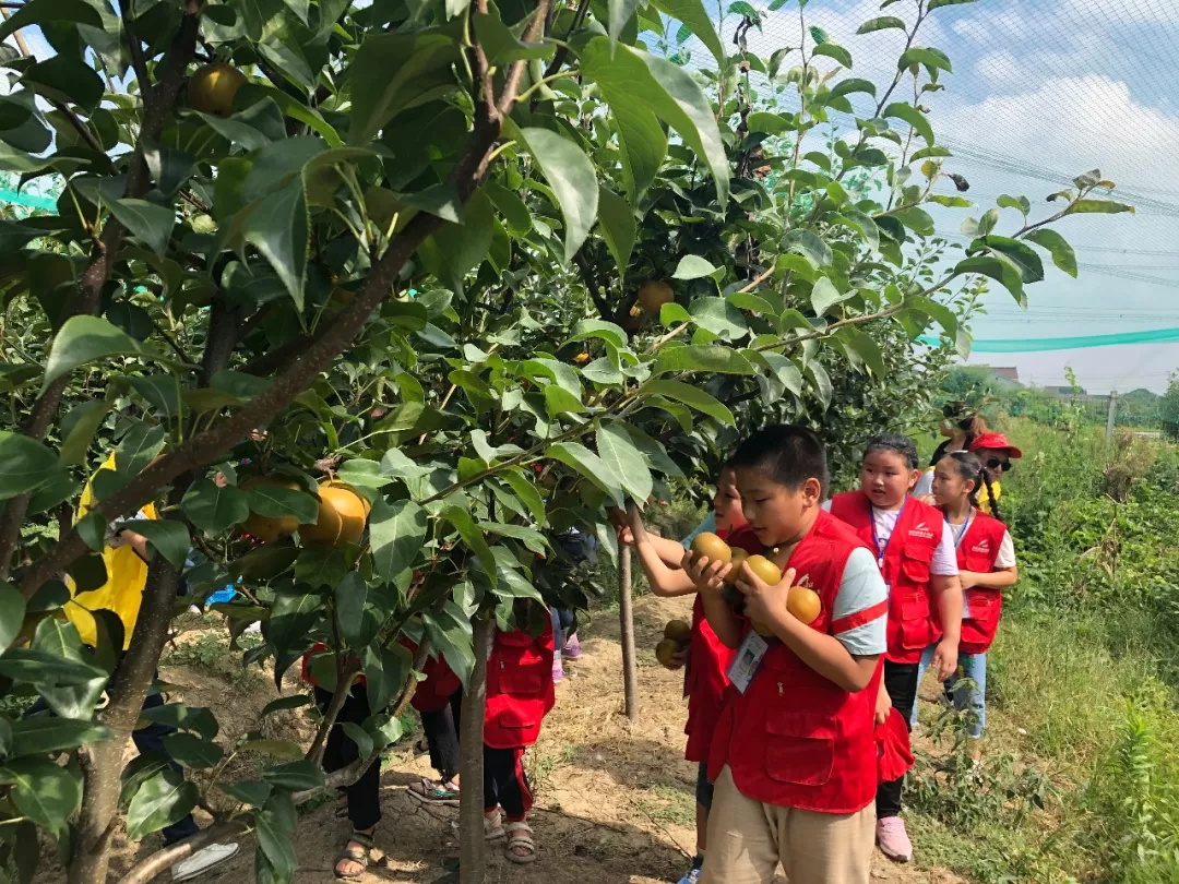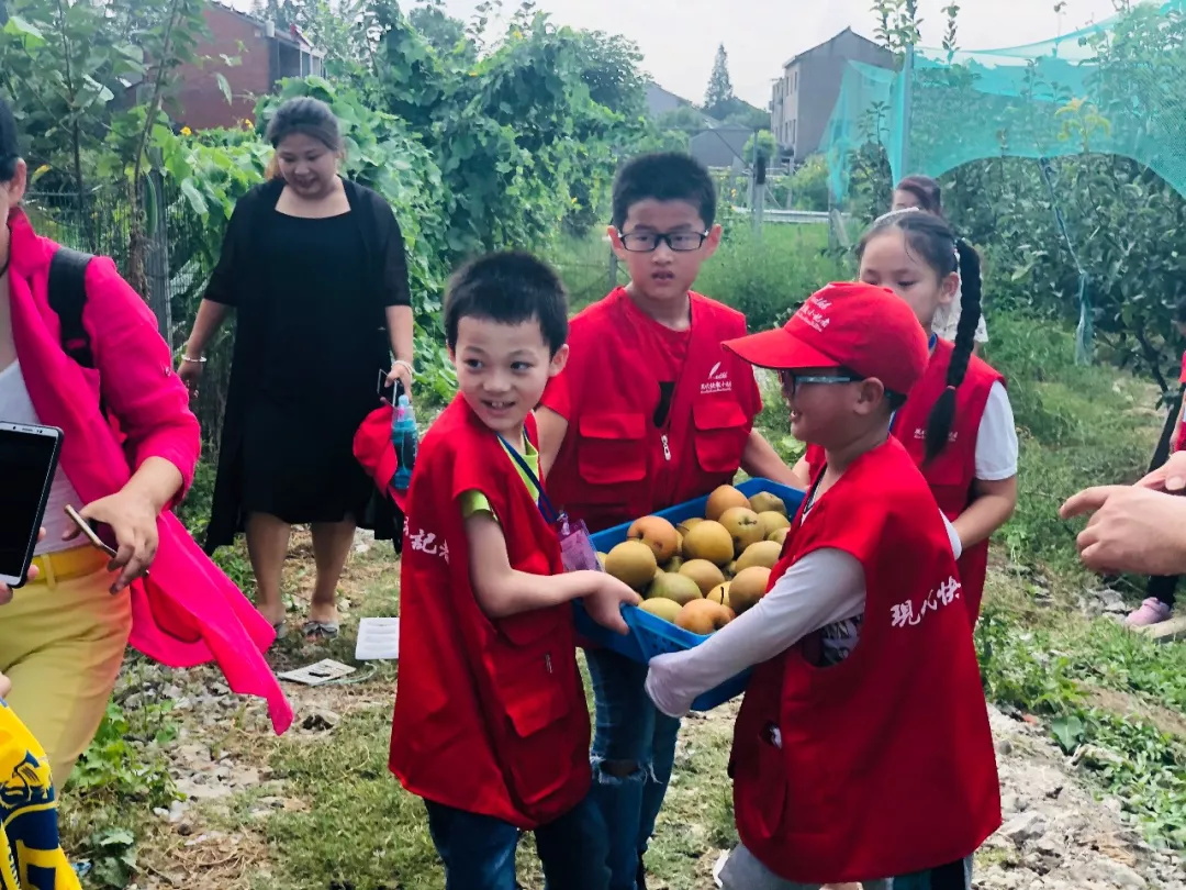 8月25日上午,现代快报小记者工作室联合全国少年儿童世界和平海报常州分展区与中国狮子联会江苏龙城服务队共同带领采菱小学的二十名小记者们走进“和平之旅”活动暨劳动实践活动,共赴“桃花庄”农庄,采摘蜜梨,爱心义卖。