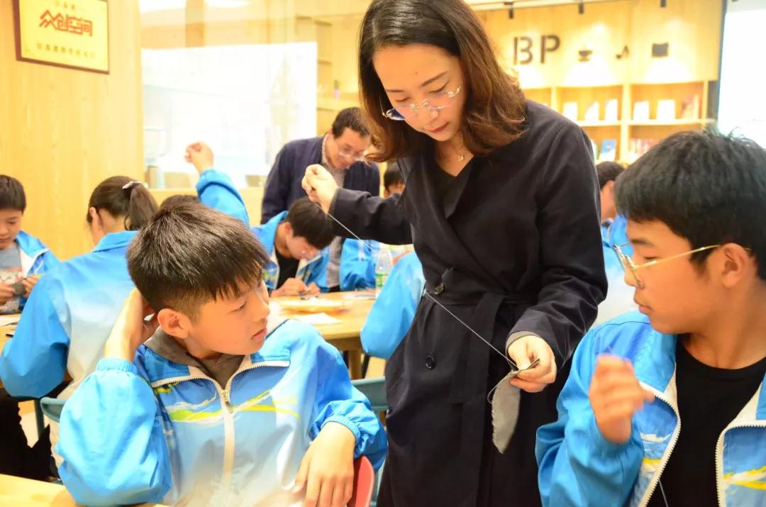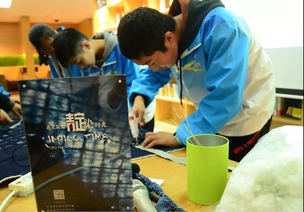 小记者首先走进纺纱车间、成品车间,了解牛仔布如何诞生;接着走进邓建军技能大师工作室,了解邓建军老师优秀事迹;最后来到充满书香气息的牡丹书吧,小记者们秒变手工达人,体验靛蓝手作的乐趣。拿着手中的郁金香作品,小记者的脸上写满了收获。