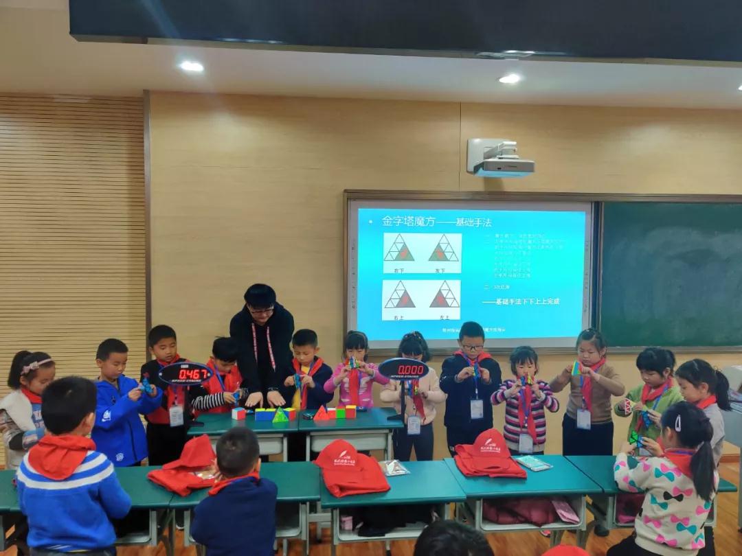 活动中,指尖魔方的枪老师为小记者们带来了魔方知识小课堂,科普了魔方的种类和玩法,查老师现场表演快速还原魔方,又带领大家学习魔方手法,并组织小记者们进行魔方还原PK赛。小记者们,老师教的手法你们都get了吗?