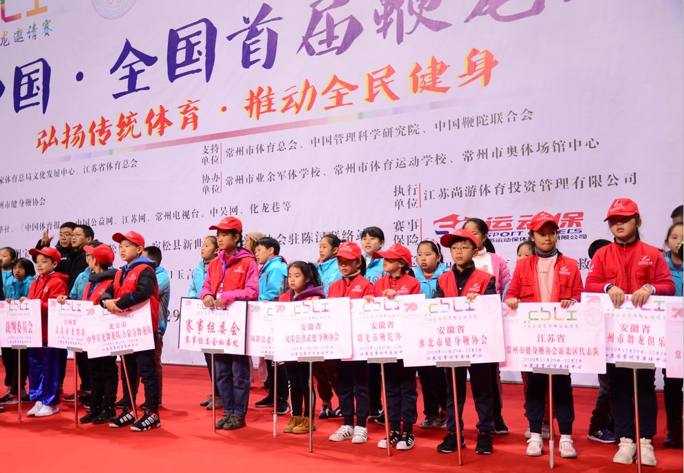 11月30日、12月1日,“庆祝中华人民共和国成立70周年·健康中国·全国首届鞭龙邀请赛”暨传统体育发展大健康研讨会在常州奥体中心举行。本次大赛由中国管理科学研究院、中国青少年艺术素质教育系列活动办公室、“健康桥”健康中国公益项目组委会、中国鞭陀联合会等单位指导,中国鞭陀联合会裁判委员会、常州市健身鞭协会主办,江苏尚游体育投资管理有限公司总策划。