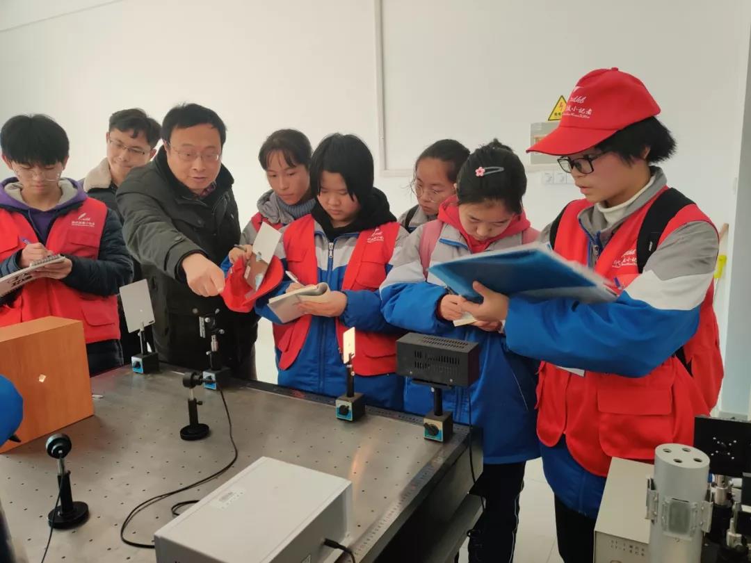 12月7日下午,来自前黄实验学校的32名快报小记者来到常州工学院辽河路校区。小记者们走进嵇明军大师工作室,参观了各种有趣的电与磁的教学仪器;又在陈功实验室聆听陈功副教授的讲解;更有幸地接触到理学院物理实验室的各种实验装置,在金雪尘副教授、朱红讲师以及大学生志愿者团的耐心说明下,小记者们对物理产生了浓厚的兴趣。