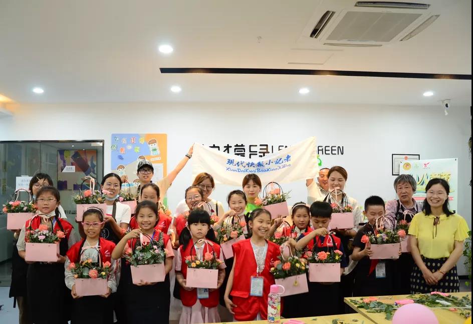 6月1日下午,快报小记者工作室联合常州园艺发展服务中心组织快报小记者走进柠檬绿少儿美学,开展亲子花艺体验活动。学习插花技艺,体验插花艺术之美,收获属于自己的花艺作品,并与常州园艺发展服务中心的工作人员现场互动采访。
