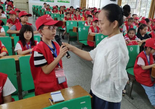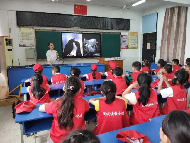 范老师带领小记者齐声朗诵《少年强,则中国强》