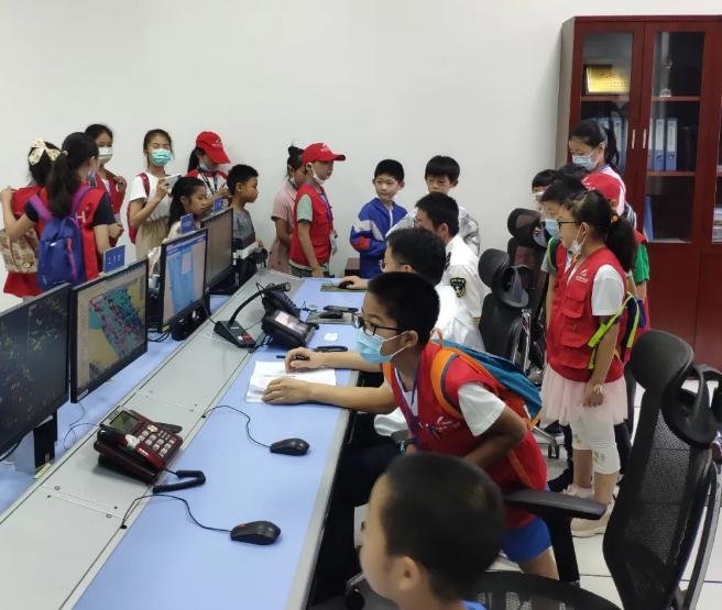 映入眼帘的是墙壁上“险情就是生命,责任重于泰山” 几个大字,以及时刻关注实况屏幕的工作人员,在这里小记者们感受到了责任与使命
