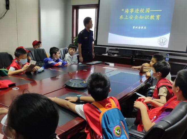 离开常州海事局,小记者们来到录安洲常州海事海巡执法支队,大家最感兴趣的当然是坐船游长江啦,先别忙,我们先听完这堂水上安全知识教育讲座