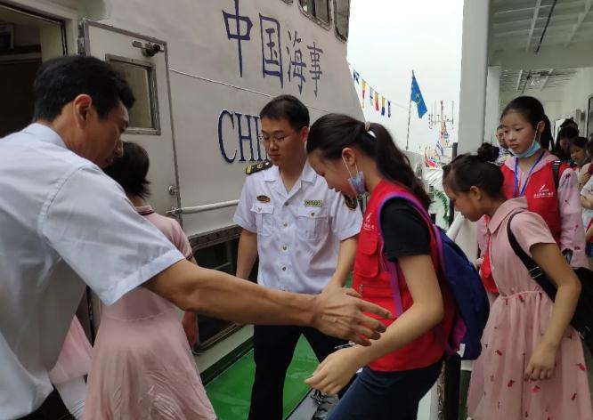 活动中,常州海事局的工作人员带领大家参观了解海事局的日常工作,为大家科普海事及水上交通安全知识,组织大家登上海事局海巡执法船,巡游在美丽的长江上,实地为大家讲解长江常州段的交通运输、基础设施、自然环境等情况。