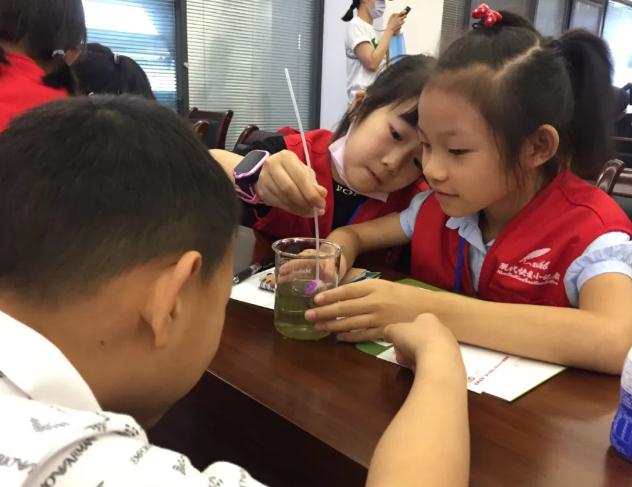 活动一开始小记者们就被面前的一堆实验器材吸引住了视线。为了满足大家的好奇心,科学老师邀请了一名小记者上台做一个小游戏,让大家感受干冰的神奇之处。