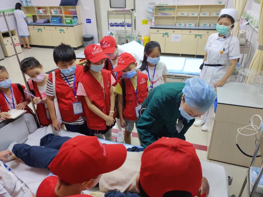 8月6日上午,河海实验小学、荆川小学、博爱小学等学校的部分快报小记者走进常州市儿童医院,在医院团委书记苏文娟的带领下,学习急救知识,体验新型测视力仪器,参观了儿童异物科普展,并与抗疫先进面对面。