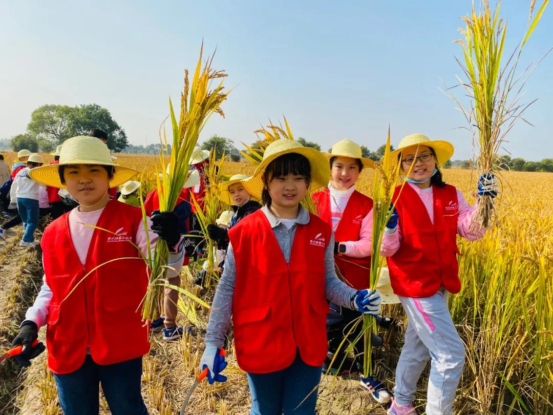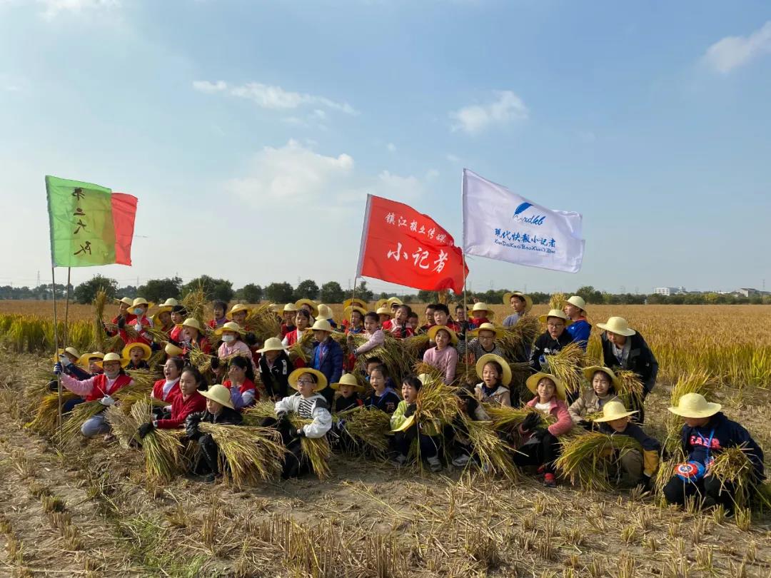 11月15日上午,小记者联谊团相聚常金大米基地,一起体验割稻、传统打谷、分谷、制作水稻进化瓶。