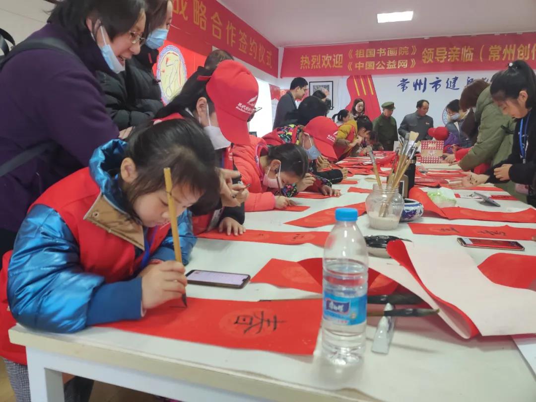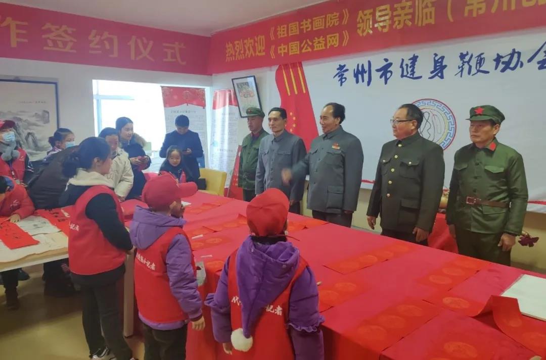 在这辞旧迎新之际,12月27日下午,现代快报小记者工作室组织来自郑陆实验学校、泰山小学、兰陵小学等学校的部分小记者们走进祖国书画院,体验鞭陀舞龙,书写对联,与市健身鞭协会的公益人士和“伟人”演员们面对面,共同迎接元旦,庆祝新年。