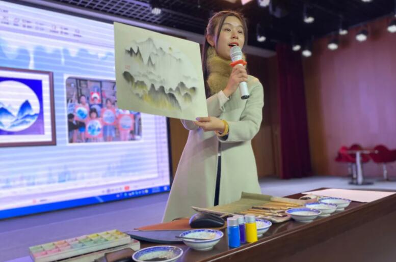 小记者们在了解了炭精画的相关知识后,观看北宋王希孟《千里江山图》动画视频和陶通老师的作画示范。小记者们都沸腾了,“哇塞,画作上面的山脉好美啊!”“烟波浩渺,就像是世外桃源一般。”