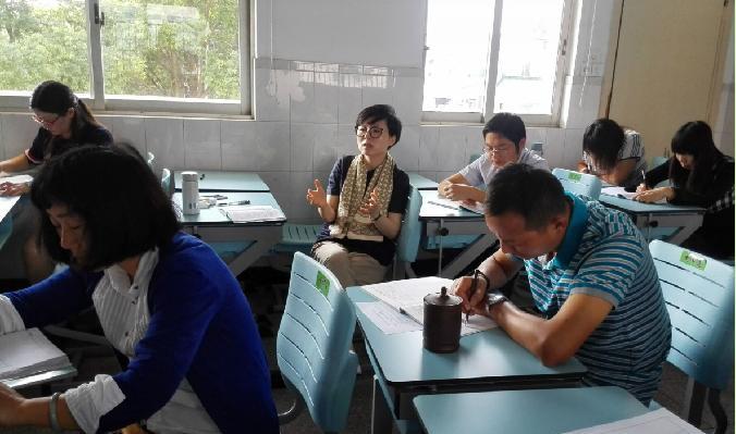 中学部四至六年级语文老师则参加了由五语备课组承担的第一次主题展示活动。首先观摩了裴静老师代表五语组的一堂展示课----《嫦娥奔月》,整堂课抓住了“嫦娥奔月”这一由唯美到凄美的画面,引领学生感悟人物形象,领悟文本的思想内涵。课堂上,学生积极参与、乐于表达、深情朗读、真情表演,沉浸在神话故事的世界里。接着,由五语备课组长钟江舟老师进行了本组的主题研究汇报,他从学生的语文学习现状出发,进行了归因分析,并提出了改进的举措,结合课文的读写结合点进行了整体设计,将“阅读教学中的读写结合”这一主题研究落到实处,并将逐步引向深入。展示结束后,各组的每位老师都对本次活动发表了自己的看法,老师们能一分为二,发现优点,找出不足,提出改进的建议等,评课质量明显提升。更重要的是,市教科院朱洁如老师全程参与本次活动,并给予了很高的评价。她站在专业的角度,认为本次活动质量很高,整个教研组活动能基于课程视野,整体规划,系统性强,这样的推进方式让教学研究有了根基;学生声情并茂的朗读、自然放松的表演,完全投入在课堂中,显示出良好的语文素养;教学内容的裁剪与安排很有型,直接指向了情感目标。同时,她也对课堂中一些关键环节的处理,给予了高位的引领,并提醒老师们要关注学生的写话兴趣、练笔的质量等。最后,周明华校长对本次活动进行了总结,她对语文组全员参与的真研究态度大为赞赏,教研组活动整体策划,节点推进,收放有度,关注品质,并希望这种真研究能在日常课堂中得以体现,培养一批真正有语文核心素养的学生。