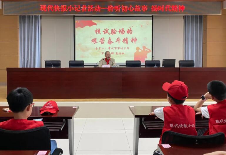 传承艰苦奋斗精神,献礼建党100周年,6月2日下午,快报小记者工作室联合常州市退役军人事务局、常州市军队离休退休干部第三休养所邀请老党员高浩松走进人民路小学,组织小记者开展“核试验场上的奋斗精神”红色主题活动。