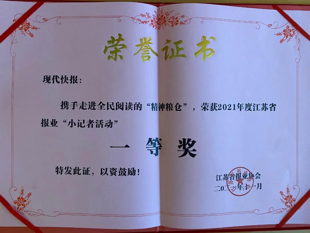会议要求:引导青少年扣好人生第一粒扣子,要从先进文化中吸氧,要引导青少年不断吸取中华优秀传统文化、红色革命文化的思想精华和道德精髓,引导青少年与时俱进学习当今中外新理念、新知识、新科技,紧跟社会发展的步伐,紧贴时代变革的脉搏。同时,要引导青少年以时代楷模为人生榜样,补足精神之钙、吸取时代之氧,成为富有时代气息的新人。小记者平台给孩子们提供了锻炼胆识和才干的机会,将大大有利于提高孩子们的观察能力、写作能力,丰富知识,扩展思维。 现代快报(常州)小记者工作室选送的参评项目已连续多年获奖,未来现代快报(常州)小记者工作室将不忘初心,砥砺前行,为广大小记者提供更优质的服务。