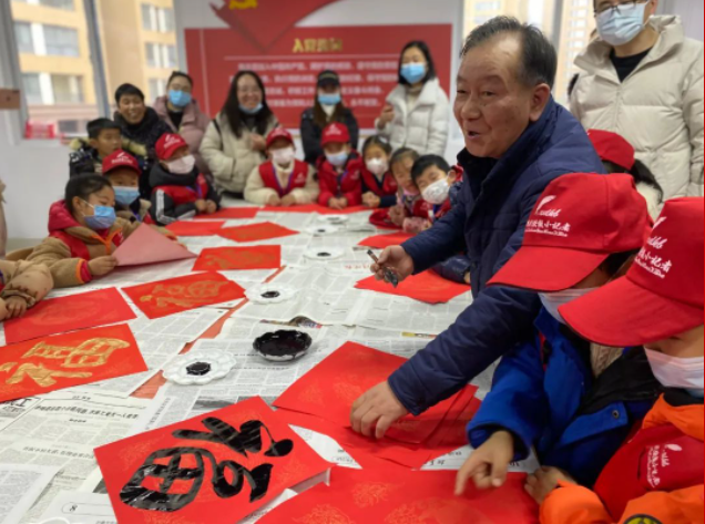 春节贴“福”字,无论是现在还是过去,都寄托了人们对幸福生活的向往,对美好未来的憧憬。活动现场,由新丰村委“明德工作室”指导老师——朱建国爷爷,为小记者教学写“福”,寄予新一年的美好期盼;小记者学习书法,积极写“福”,把“福”带回家;上门为社区老人送“福”,暖人心,树风尚。
