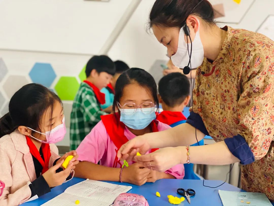 体验环节到啦!小记者们各自拿起材料,用灵巧的双手和一根细长的竹签,学习揉、捏、搓、切等技法,体验制作金元宝和小葫芦。活动最后,华老师还带领大家学习制作可爱的小红花,堆花糕团的魅力,随着花朵的成形在小记者心中绽放。