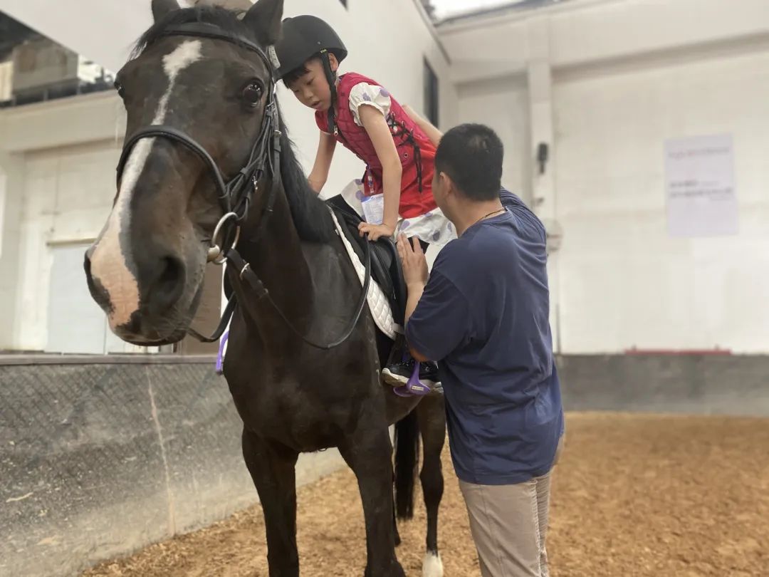 “靠近马儿时,不要碰到马屁股”“左脚上马,注意手要抓住马鞍”“坐在马背上人要平视前方,腰背挺直”小记者们都稳稳上马,有的还平举双手,体验平衡感。“今天我的心情起伏特别大,报完活动我特别激动,可是见到马儿时我内心特别恐惧,等我坐上马背,马儿前行时我尝试克服内心恐惧,心情平静了下来,我也成为了勇敢的小骑士呢。”浦前小学小记者王苏文激动地说道。“我在老师的指导下,学习了骑马的姿势和掌握平衡的方法,学会了趴在马背上拥抱马,非常自豪!”怀德苑小学的唐艺轩积极分享道。