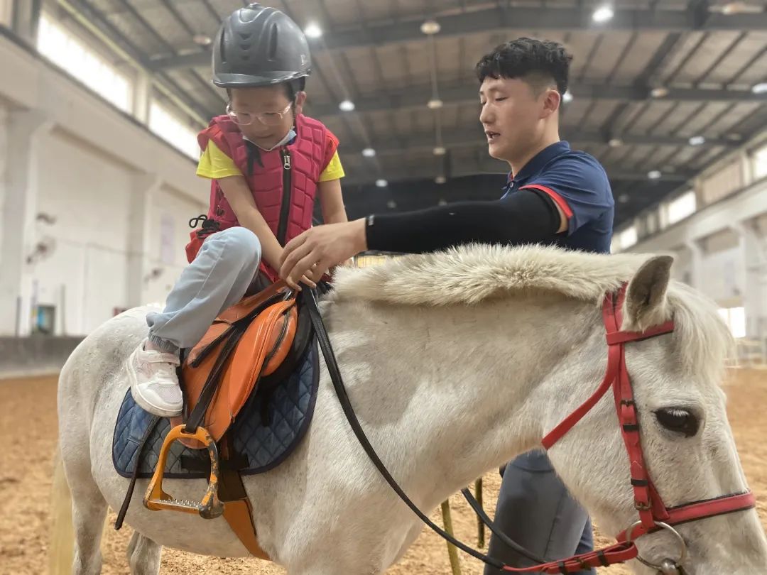 马术装备有哪些?如何喂马?小记者围拢着工作人员,聚精会神地学习马术的各项知识,对马匹的分类、特点及马术礼仪有了一个初步的认识。