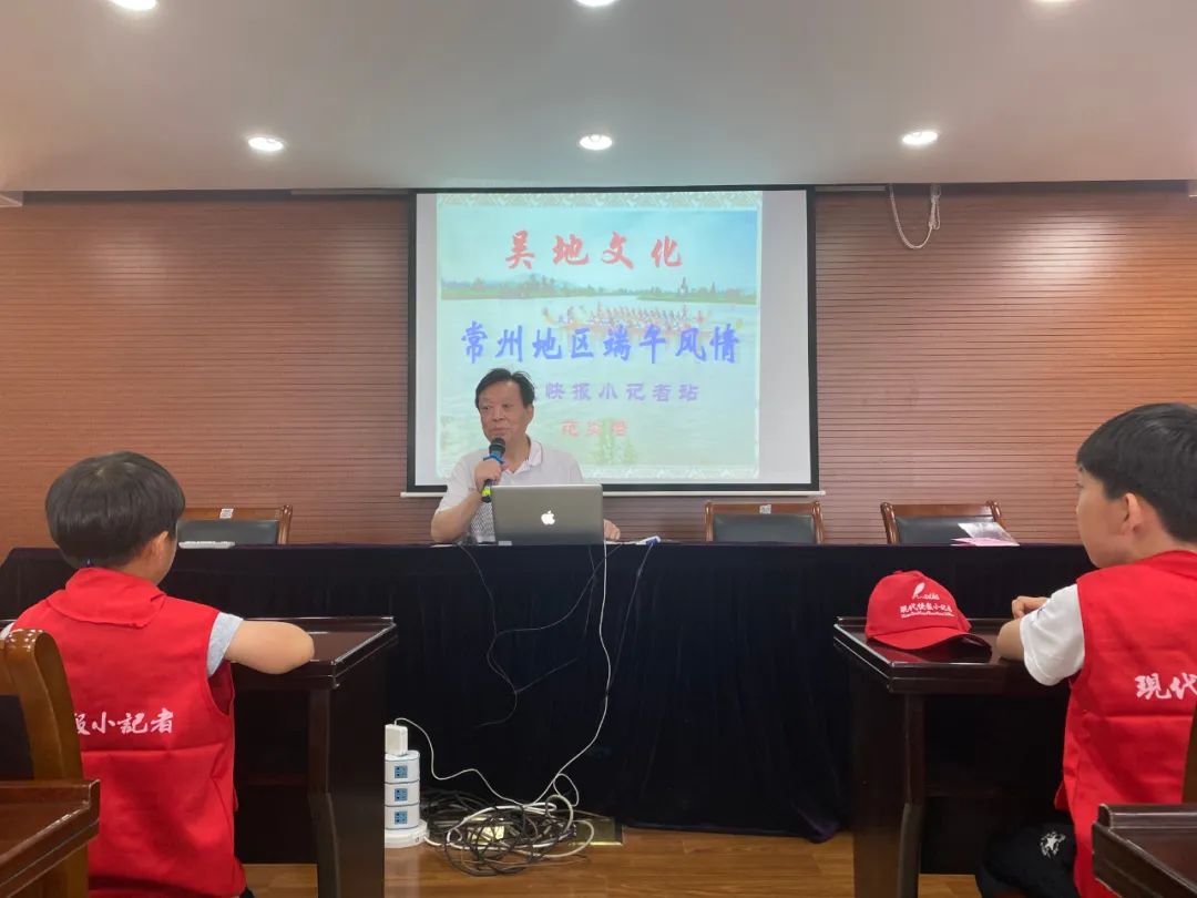 “水嬉金翠活龙鳞,游舫千艘沸水滨……”报告厅里传出抑扬顿挫的童声,那就是常州吟诵,小记者仿佛穿越时空,化身小小书童,用划龙舟的方式庆贺端午佳节。