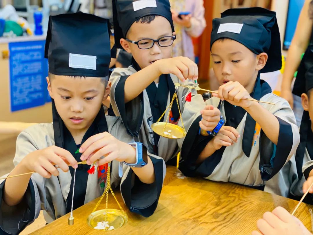 小记者们换上汉服,仿佛穿越了时光,化身为一名名小药师,开始今天的医药知识学习之旅。熊孩子中医馆的老师带领小记者们了解中医的历史,辨识草药。