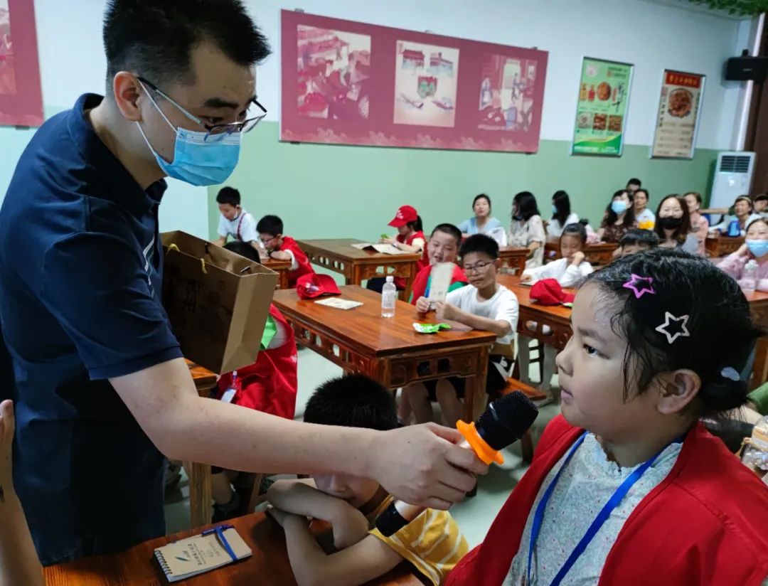 在玉蝶萝卜干第五代传承人徐进的带领下,小记者们参观了萝卜干展馆、生产车间,蔬菜种植园,观看玉蝶萝卜干企业品牌故事视频并进行互动采访。