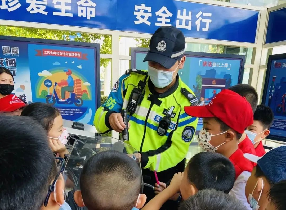 常州市公安局交通警察支队钟楼交警大队交警张俊,为小记者讲解哪些情况属于不文明行为、交通违法行为,并告诉小朋友们如何安全过马路、安全乘车等实用知识。平时电动车出行过程中,一定要戴好安全头盔,并为大家示范头盔正确戴法。