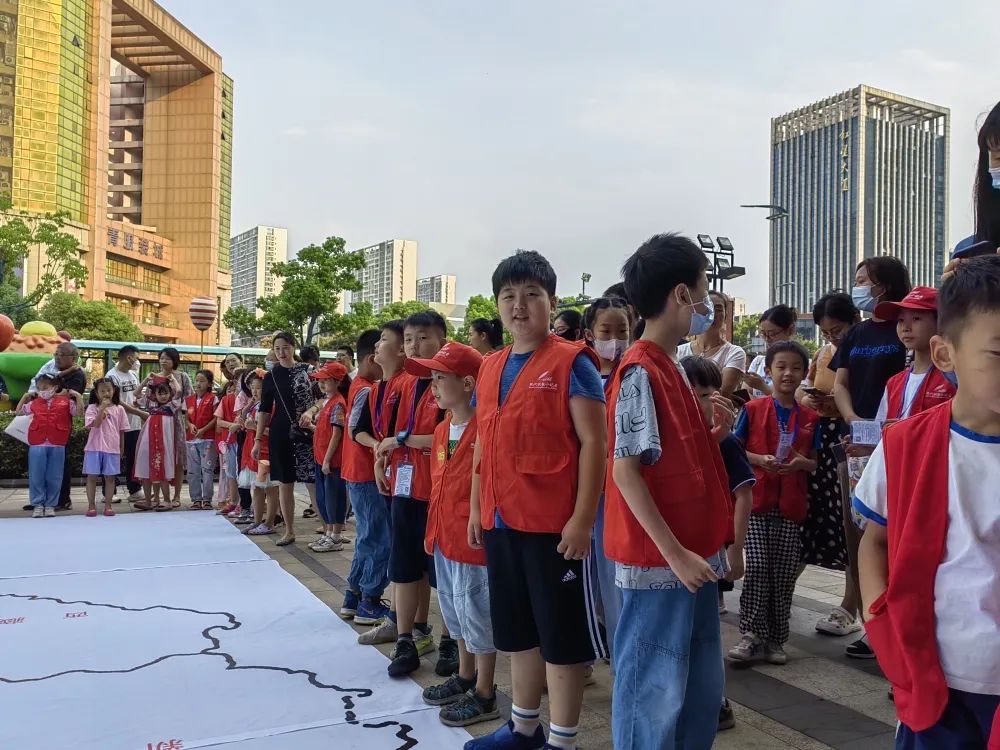 9月11日下午,现代快报小记者工作室携手星河COCOCity,邀请采菱小学、湖塘桥实验小学、常大附小、北环小学、汤庄桥小学、星河实验小学、横林实验小学等八所学校的小记者们,用鞋印画的方式,在巨幅中国地图上走遍祖国山河,一次逛遍34个省级行政区!