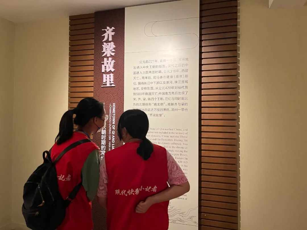 小记者们首先跟着讲解员来到二楼的“龙腾中吴——历史文化陈列馆”,从“圩墩人生活场景”到“寺墩遗址”,从古朴的石器到精美的玉器、瓷器,从神秘的古淹城到“毗陵古驿”,从延陵季子到齐梁故里……大家穿越时空的隧道,踏着祖先的足迹,感受着家乡历史的发展、人类文明的进步。