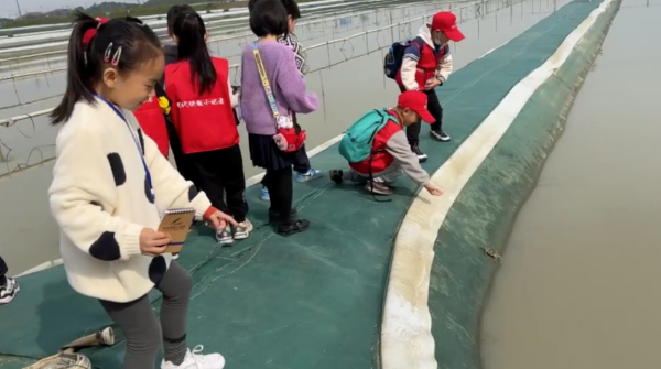 来到塘边,小记者们亲眼看到了蟹苗和成熟的大闸蟹的生活状态,胆子大的小记者自己动手抓起螃蟹,观察它们的大钳子和腹部纹路,近距离接触活蟹。每人得到了两只小蟹苗,带回家好好养起来吧!