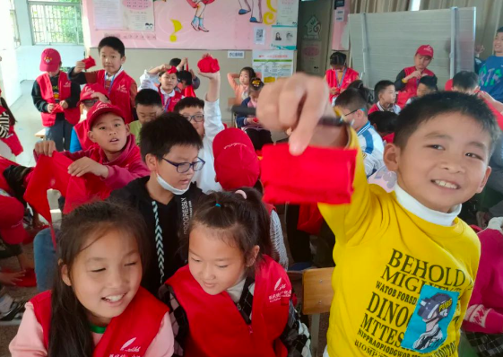 活动最后,马老师带领小记者们学习折叠红领巾。大家按照马老师教的方法,从抖灰开始、平铺、叠成长方形、找口袋……,最终完成对于红领巾的折叠。