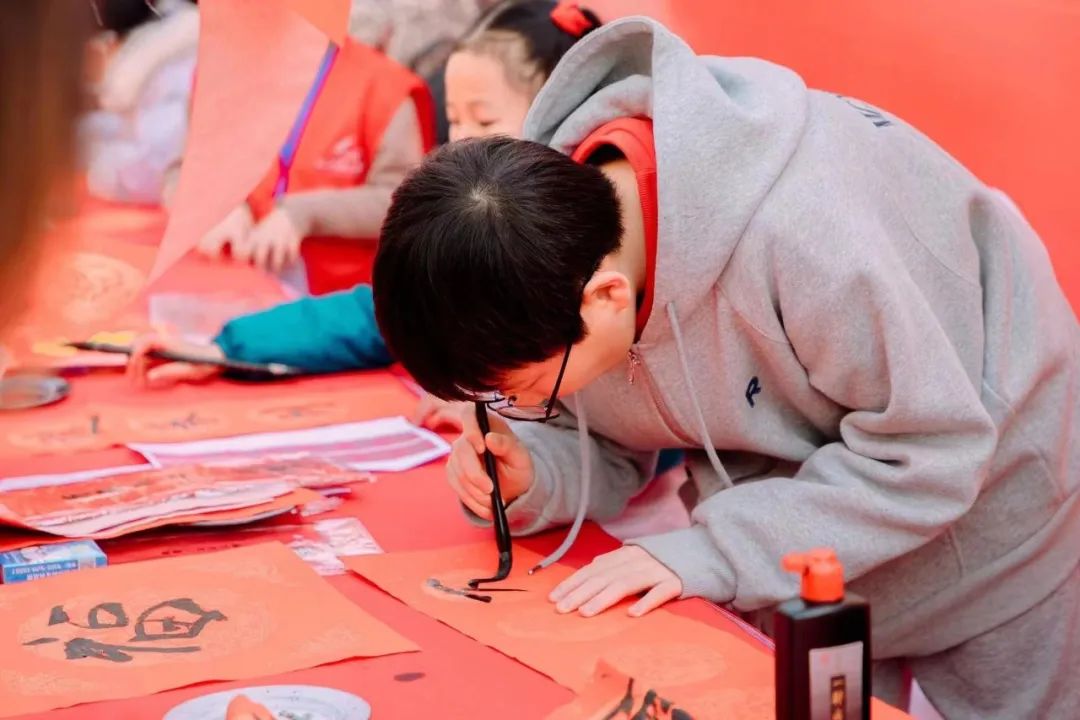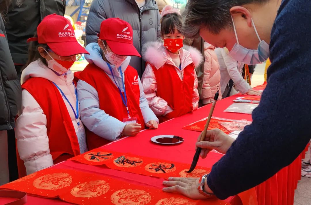 小记者们端坐在桌子前,一展身手。有的小记者现场挥毫,写福字写春联,送给现场市民,迎来一片点赞。