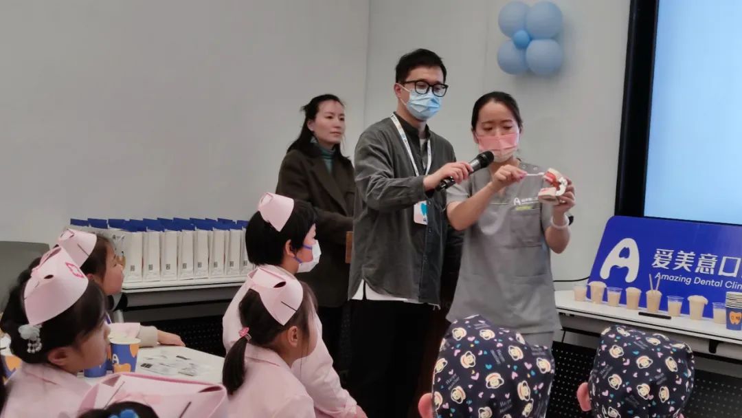爱美意口腔医师向小记者介绍如何预防龋齿,如何正确刷牙,如何正确使用牙线……