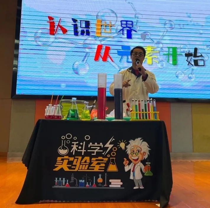 德伊门科普教育基地的大侠老师为学生们上了一堂关于元素的科普讲座活动,通过极具趣味性的形式让孩子们迅速、快乐地记住了18个元素,孩子们听得津津有味,以快速的背诵出18个元素。
